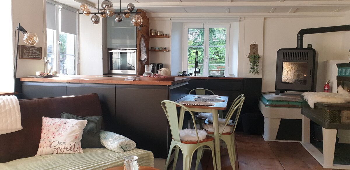 Genieße ein stilvolles Erlebnis in dieser Zentral gelegenen Unterkunft. Wunderbares Wandergebiet, Ländlich und trotzdem nahe am Autobahnzubringer. Kleiner Dorfladen, Museeum, Hofladen. Die Unterkunft ist nicht geeignet für Kinder unter 10 Jahren. Es ist kein Wickeltisch oder Kinderbett vorhanden. Ich bitte sie das zu respektieren. Die Wohnung befindet sich in einem über 300 jährigen Haus. Separater Eingang, Parkplatz, Gärtchen vorhanden. Frühstück auf Anfrage ab 8.00 Ich freue mich auf Sie.