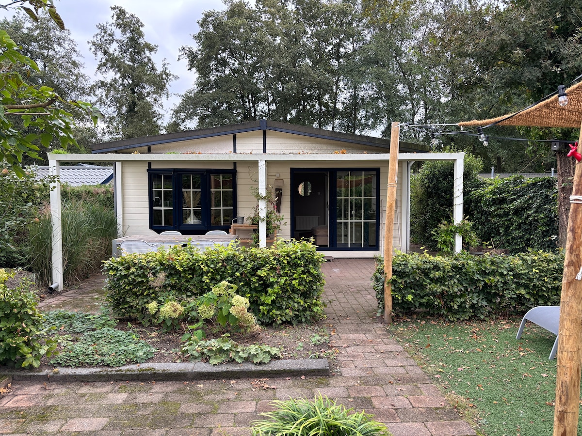 En el límite de la región de Veluwe, escondida entre los árboles, se encuentra una encantadora cabaña. Despiértate con el canto de los pájaros y vistas al campo. Relájate en la sauna de barril (10 €) o en la bañera de hidromasaje (25 €) bajo las estrellas. O tomar una copa en la kota finlandesa. En la zona rural, puedes disfrutar de senderismo o ciclismo en los alegres tándems. También hay rutas de bicicleta de montaña cerca. Cama para 2 personas en el dormitorio, sofá cama para 2 personas en el salón.