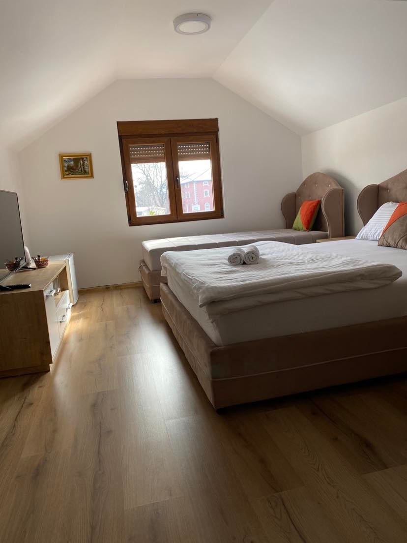 Experience the perfect mix of style, comfort, and warm hospitality in the hart of Nikšić. Our thoughtfully designed rooms offer a peaceful retreat with modern amenities and a cozy, home like feel. Wake up to a fresh, delicious breakfast and enjoy the convenience of free parking. An ideal base for exploring Montenegro, including the stunning Ostrog Monastery and Durmitor National Park. More than just a stay- a place where you feel truly welcome.