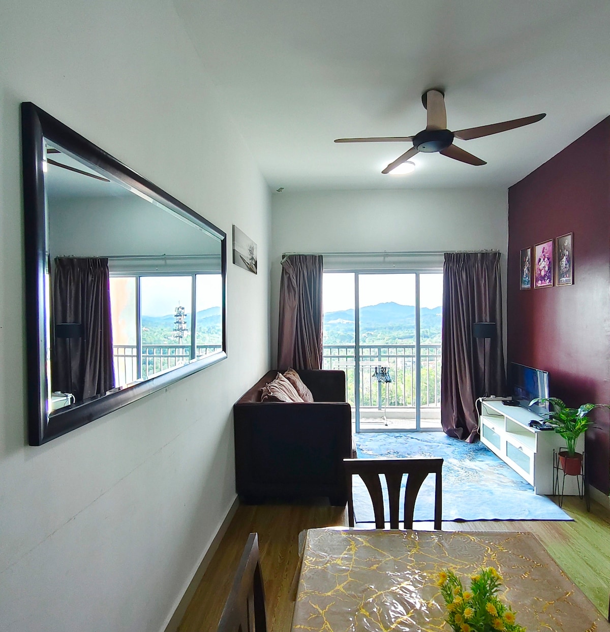 Apartamento de 2 dormitorios equipado con 3 aires acondicionados, internet de alta velocidad y el más reciente es un purificador de agua ideal para alojar a 4 personas. Sereno entorno en planta alta, completo con piscina y gimnasio. Ubicado cerca del aeropuerto KLIA, Malasia. Disfruta de una estancia sin estrés con llegada autónoma las 24 horas, convenientemente ubicado a solo 15 minutos del aeropuerto internacional T1 o T2. Tanto si tienes una salida temprano por la mañana como si llegas tarde, ahorra tiempo y relájate antes de tu vuelo. Grab está disponible las 24 horas.