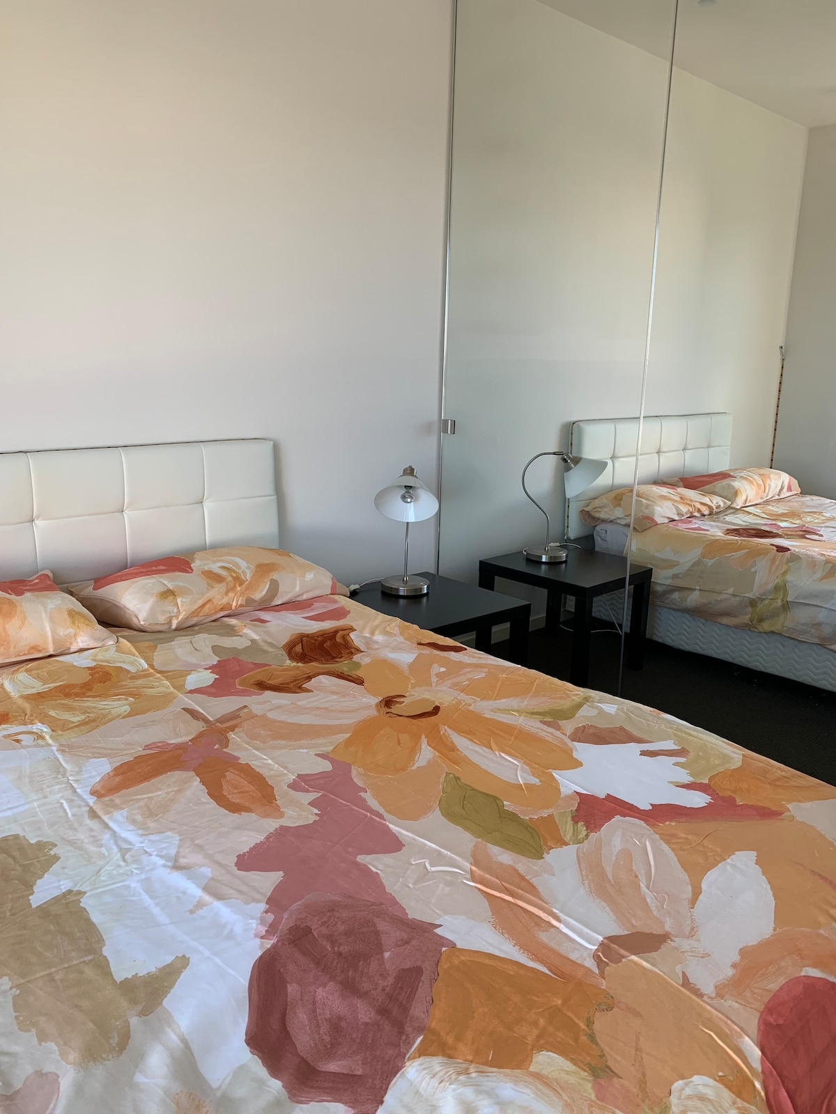 Two bedrooms and 1 bath apartment in a recent construction, clean and modern complex. The room available to use has a large wardrobe and a queen bed. During the staying the guests will have full access to the property included internal secured car park if needed. Very convenient location to Supermarket, University Hill Shopping Centre (DFO), restaurants, buses and tram. It is 400m from RMIT University campuses. Close to nice bush walk in the creek Ideal for work or study. Pet friendly.