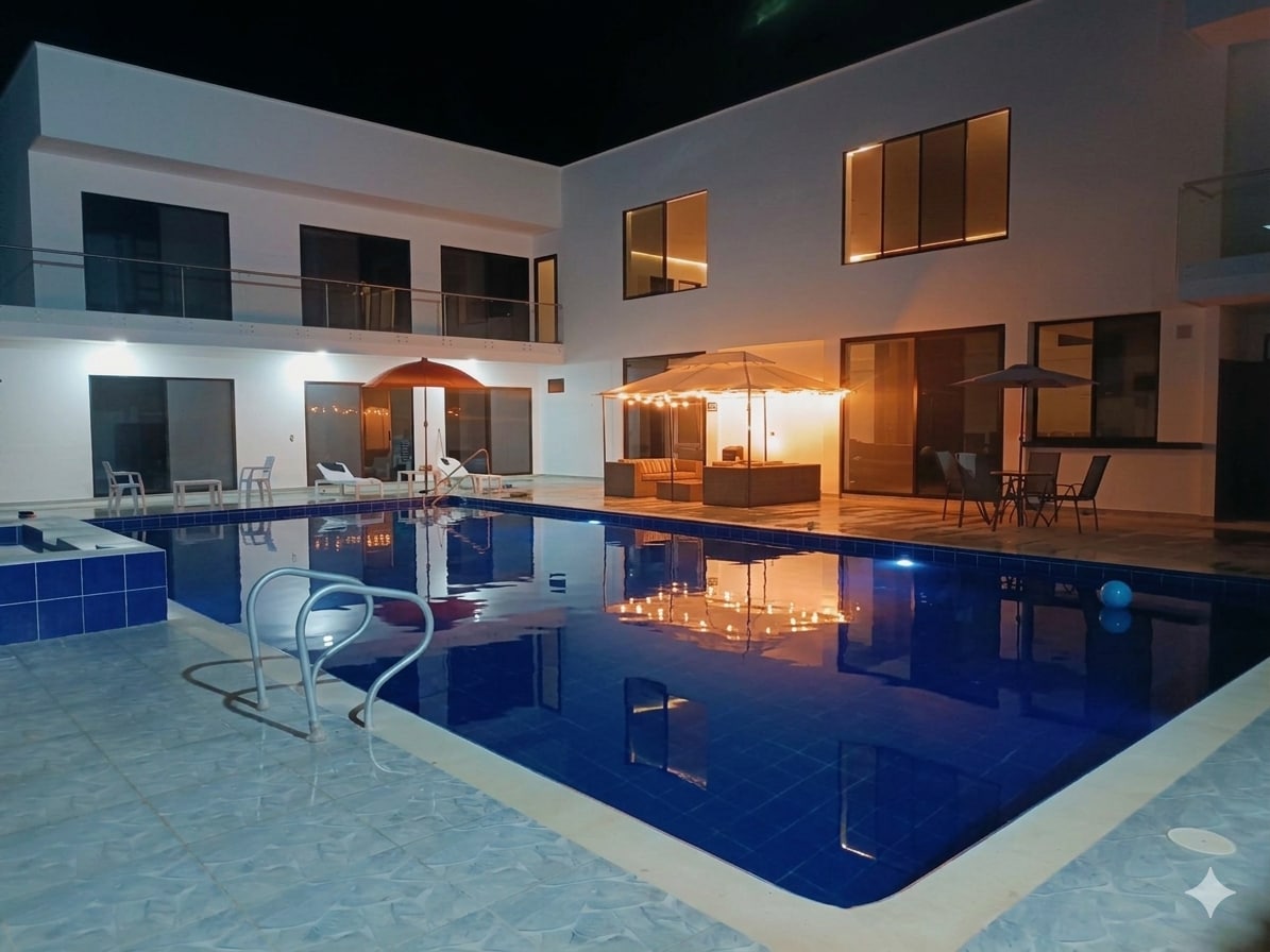 Moderna casa amoblada con piscina, bar húmedo, jacuzzi,BBQ,Hamacas y parqueadero para 4 carros. Apta para familias con niños , las habitaciones con aire acondicionado, secador de pelo..A 10 minutos en carro de todos los lugares de interés como restaurantes, almacenes y vida nocturna. Hermosas vistas y zonas exteriores.