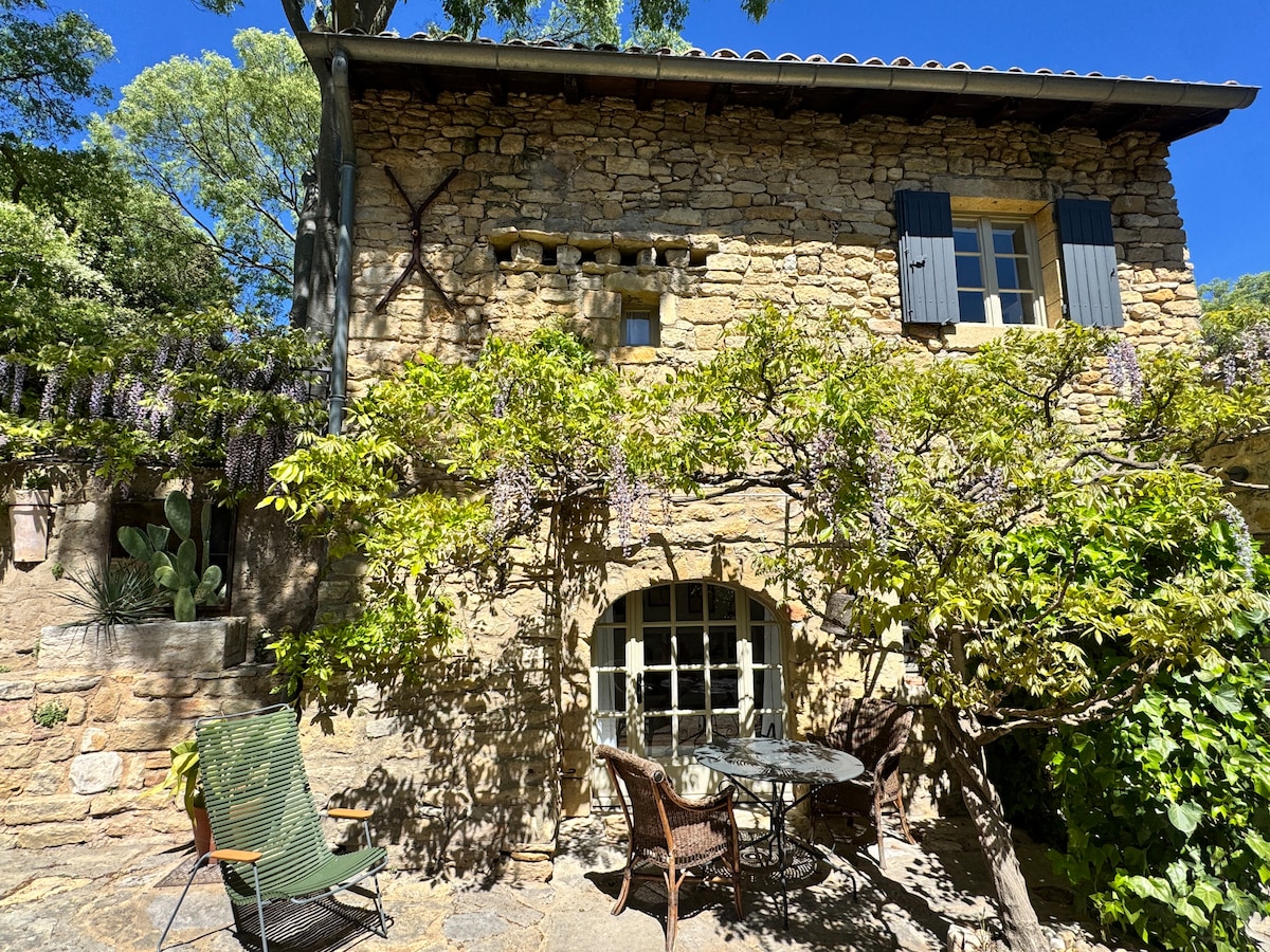 "Regálate un paréntesis romántico en un loft de 65 m², con sauna y balneoterapia para relajar el cuerpo y calmar la mente. El patio y la terraza privada invitan a saborear el momento, mientras que la cama con dosel al aire libre le promete siestas y noches bajo las estrellas. Acceso a la piscina compartido, privacidad preservada. Frente a usted, la montaña rocosa se revela, acunada por el canto de las cigarras. La magia opera, el tiempo cuelga su aliento en este capullo de amor."