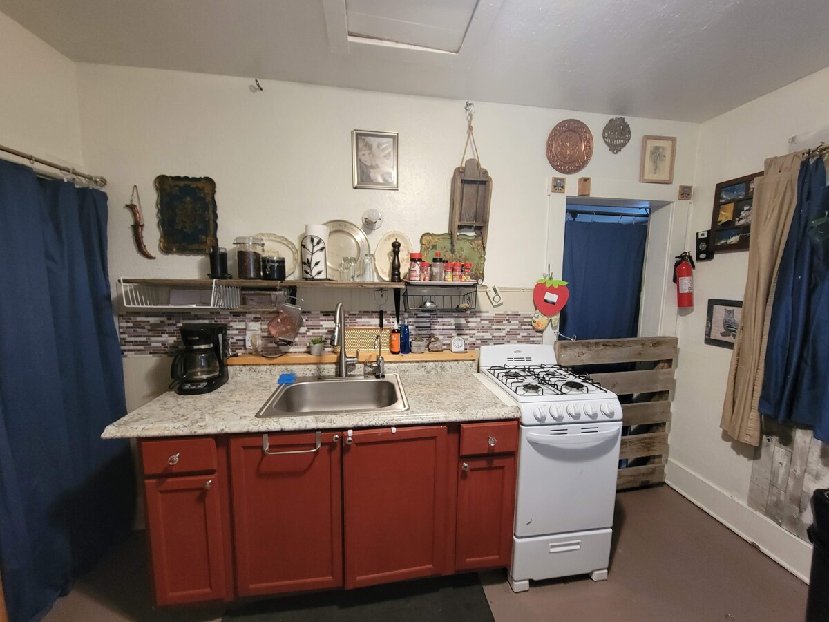 Quiet, Private, Clean getaway from the weather & city traffic or lines. 45 minutes to Douglas, 1.5 hours to Casper, 2 hours to Cheyenne, 3 hours to Fort Collins, 2.5 hours to Sturgis, SD.. Queen bed & attached complete bathroom with stand up/corner shower. Fully equipped kitchen, 2 leather recliners & smart t.v. in living area. 1/2 block to grocery store, clinic,pharmacy, restaurants, hardware store & library are all in walking distance. Presently offered for sale with 20k down 615 month.