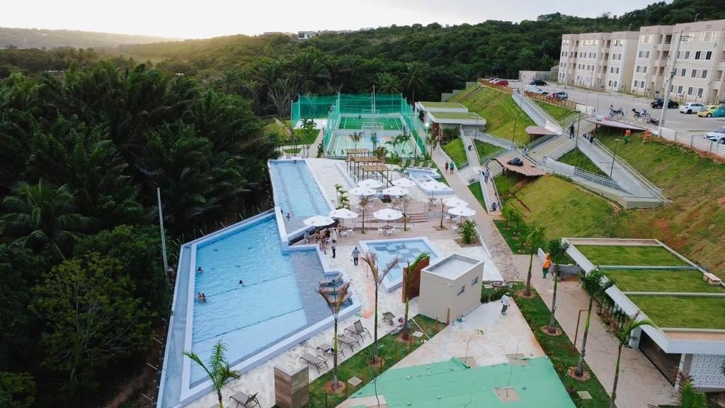 Venga a disfrutar de lo mejor de Pium, un barrio acogedor conectado con la naturaleza y a 7 minutos de la popular playa de Ponta Negra, con las mejores playas de la costa sur. Apto. planta baja lado de la sombra, dos dormitorios, 1 dormitorio con cama doble con aire acondicionado, el otro con 2 camas individuales y 3 colchones auxiliares y ventiladores, baño social, sala de estar con TV, sillones y mesa de comedor, cocina completa. Zona de ocio perfecta, con campo, canchas, gimnasio, sala de juegos, piscinas, coworking.