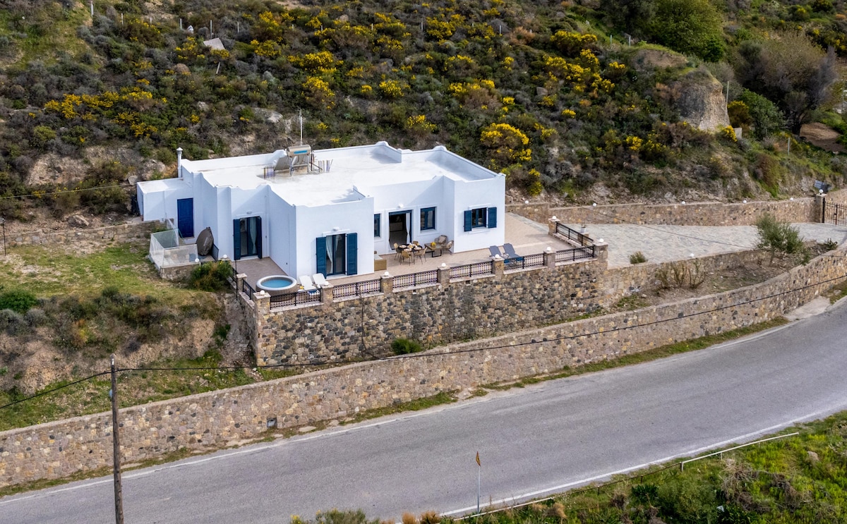 Luxurious house by the sea in Mandraki, the capital of Nisyros island. The house (member of “Loloma Homes - Greece”) is located in the heart of the old town in one of the most beautiful neighborhoods of Mandraki in front of a lovely square & under the Oxos mountain with the Spiliani monastery. From the spacious terrace you can relax enjoying the beautiful sunset. Grocery stores, restaurants and bars, as well as the famous volcanic beach of Chochlakia is less than 2 minutes walk from home.