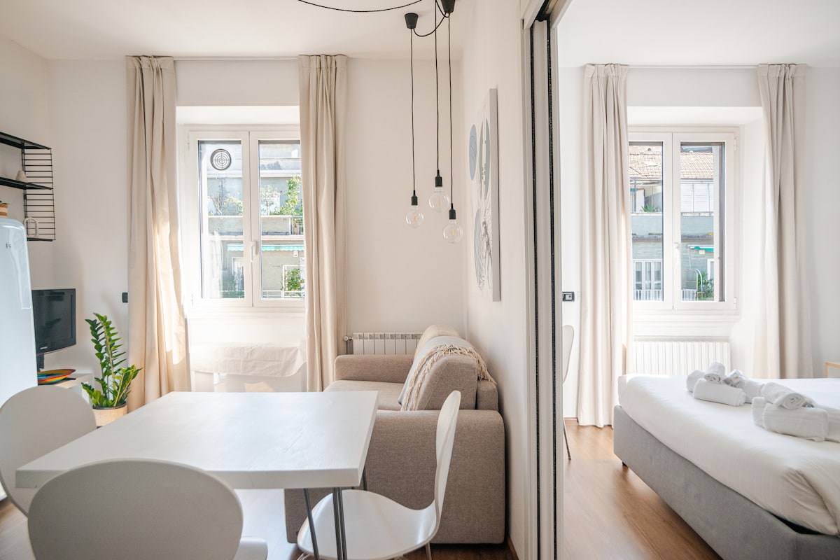Bienvenido ^^ a nuestro oasis urbano en el corazón de la ciudad de Milán, capital italiana de la moda, el diseño y la gastronomía ★ Este encantador departamento de un dormitorio está diseñado para ofrecerte una experiencia de estancia única, que combina la comodidad moderna con un ambiente acogedor con un toque cinematográfico. ★ Una zona estratégica que conecta en pocos minutos con todos los puntos de interés de la ciudad, ideal tanto para necesidades turísticas como laborales y para aquellos que quieren aprovechar al máximo cada minuto.