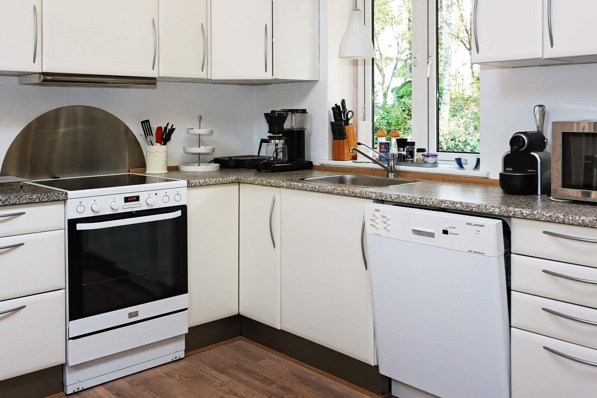Preciosa casa de verano de 120 m² en dos plantas en medio de la hermosa naturaleza. Hay una de las mejores playas de la costa este con un embarcadero, a solo 400 metros de distancia. El mar se puede ver desde la casa. Hay un bosque/pradera privado/a Es fácil llegar a la casa y salir de ella; está situada junto a la carretera, a 5 km de las tiendas de Fjellerup y a 9,5 km del parque de atracciones más grande de la región nórdica, Djurs Sommerland. Los huevos se venden de gallinas felices de patas largas Los perros y gatos son bienvenidos a un precio más alto de 200 DKK, no están permitidos en los muebles. No se admiten grupos de jóvenes Se incluye la alimentación eléctrica