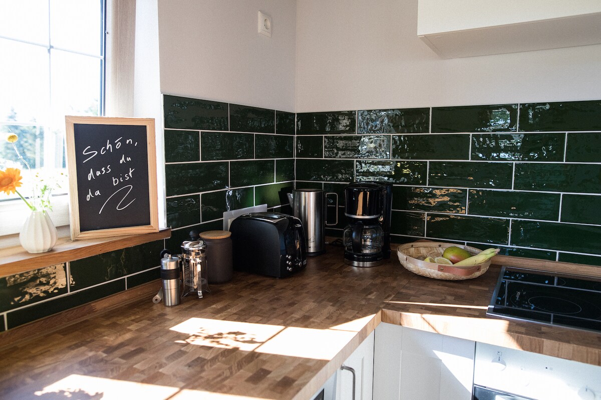 Welcome to my modern country house, lovingly renovated in 2022. Wooden floors, a cozy fireplace, and a natural stone countertop create a warm atmosphere. Large windows flood the house with light throughout the day. Children can enjoy the playroom with a swing and toys. Relax in the bathtub after a day of adventure or explore the surroundings with our bicycles – the perfect place to unwind and relax!