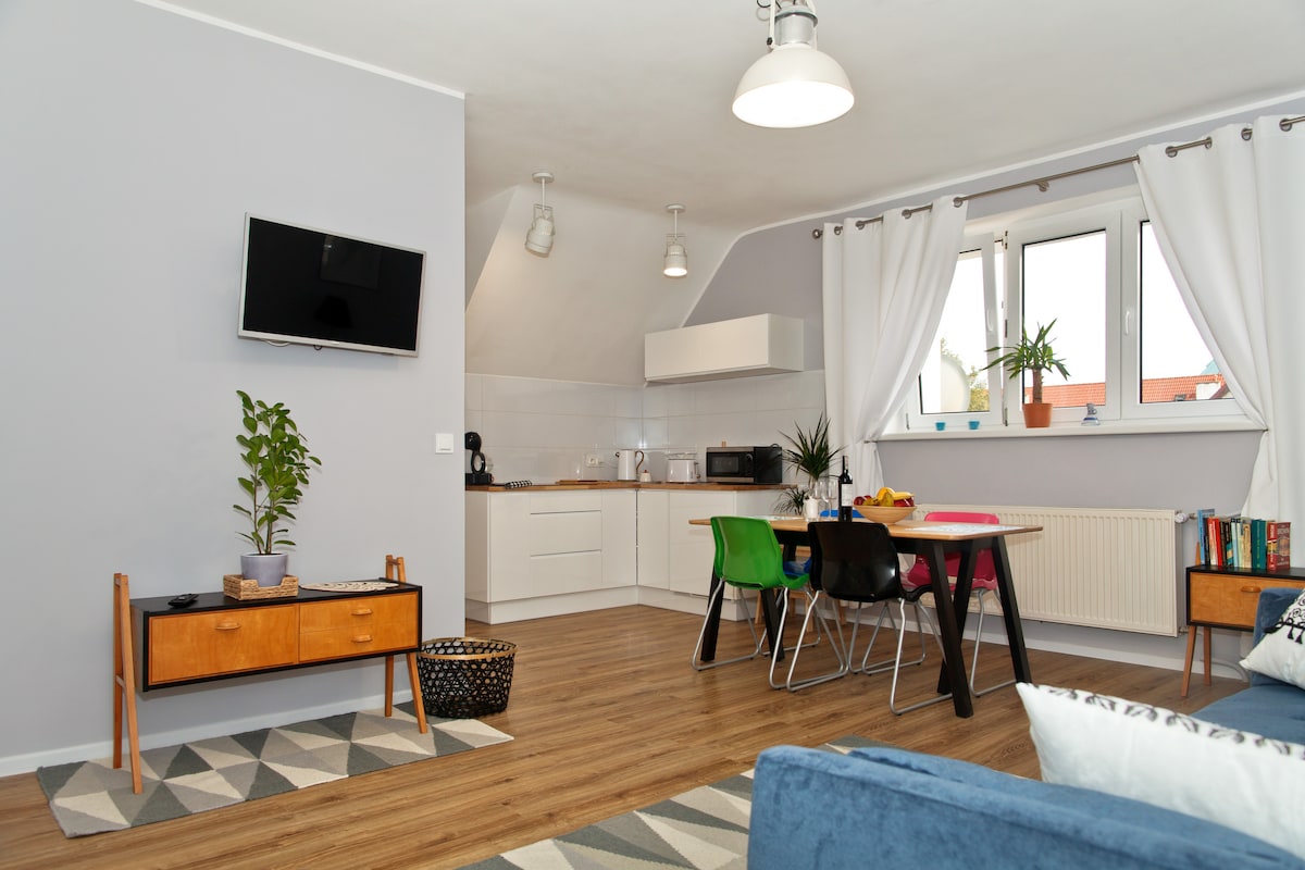 Nuevo (encargado en febrero de 2020), espacioso (42 m2) y moderno apartamento para 4 personas. Anteriormente, la residencia urbana de lujo de la aristocracia Stettiner, por lo tanto, la arquitectura, que combina el clásico de un edificio de 100 años con modernidad, diseño interior y colores del apartamento, se refiere al clima de la residencia a partir de los siglos XIX y XX.