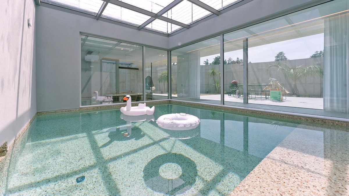 Evento de descuento para conmemorar la apertura de▶ Jeju SUM ◀ 1. Descuento en el precio de hasta 55%~20%. 2. ¡¡¡Carga de vehículos eléctricos gratuita para estadías de 2 noches o más!!! Una estancia pacífica "Jeju Sum" que parece estar escondida en la espuma del mar. Relájese y sane en un alojamiento tranquilo pero con estilo. Es la cuarta obra de "Diseño del atardecer". Desde cualquier lugar del interior se conecta con el mar sin ningún tipo de interferencia. La temperatura de 35 grados de Jeju que se disfruta frente al mar disuelve completamente la fatiga. Un día que neva, sienta la calidez que se puede disfrutar en un baño al aire libre. Y en primavera, verano y otoño, puedes sumergir los pies en las frescas instalaciones de baño de pies (estanque frío) y disfrutar de una cena o un café para relajarte. Está optimizado para el descanso de dos parejas o una familia de cuatro. Si estás en "Jezu Breath", no tendrás tiempo suficiente para disfrutar solo en el interior. Recomiendo encarecidamente quedarse más de 2 noches.