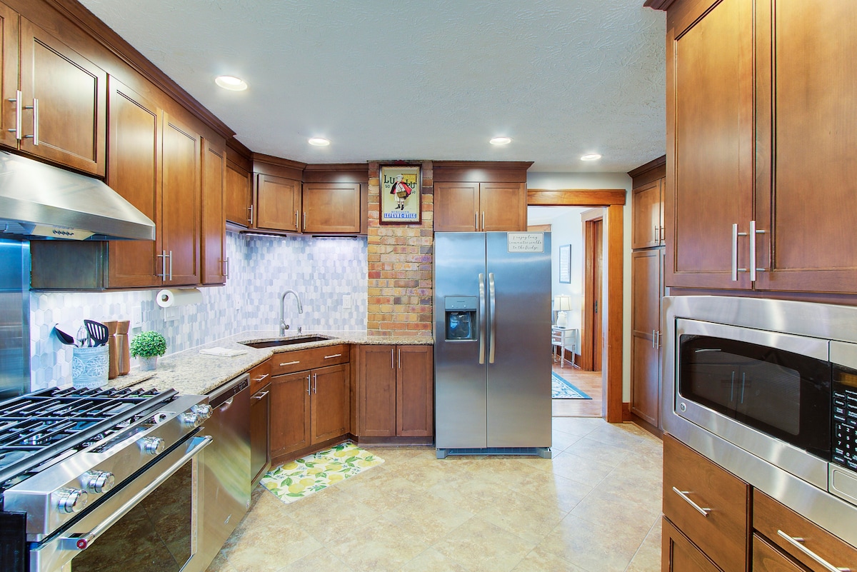 ¡Esta casa simplemente te hace sentir bien! Este hermoso alojamiento de cuatro dormitorios muy bien equipado está situado en el corazón del histórico Hartville, Ohio. Esta espaciosa casa, construida en 1932, posee todo lo que esperarías de la época, como hermosas carpinterías, techos altos, suelos de madera y un diseño maravilloso. El alojamiento Relájate y disfruta de esta elegante casa que ha sido remodelada con comodidades modernas, conservando el encanto antiguo. Un gran espacio para parejas, amigos, familias y viajeros de negocios.