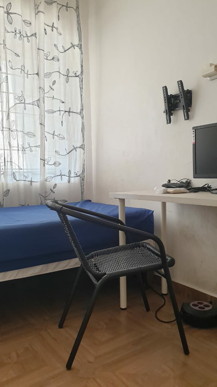Un dormitorio para 2 personas, cama de muelles de aire, cable de televisión, wifi, mesa con silla sencilla, armario , ducha privada con agua caliente, baño privado, soporte para lavar la mano con espejo, habitación espaciosa ( puedes abrir la ventana) y balcón privado. Wifi rápido con Internet WIFI.