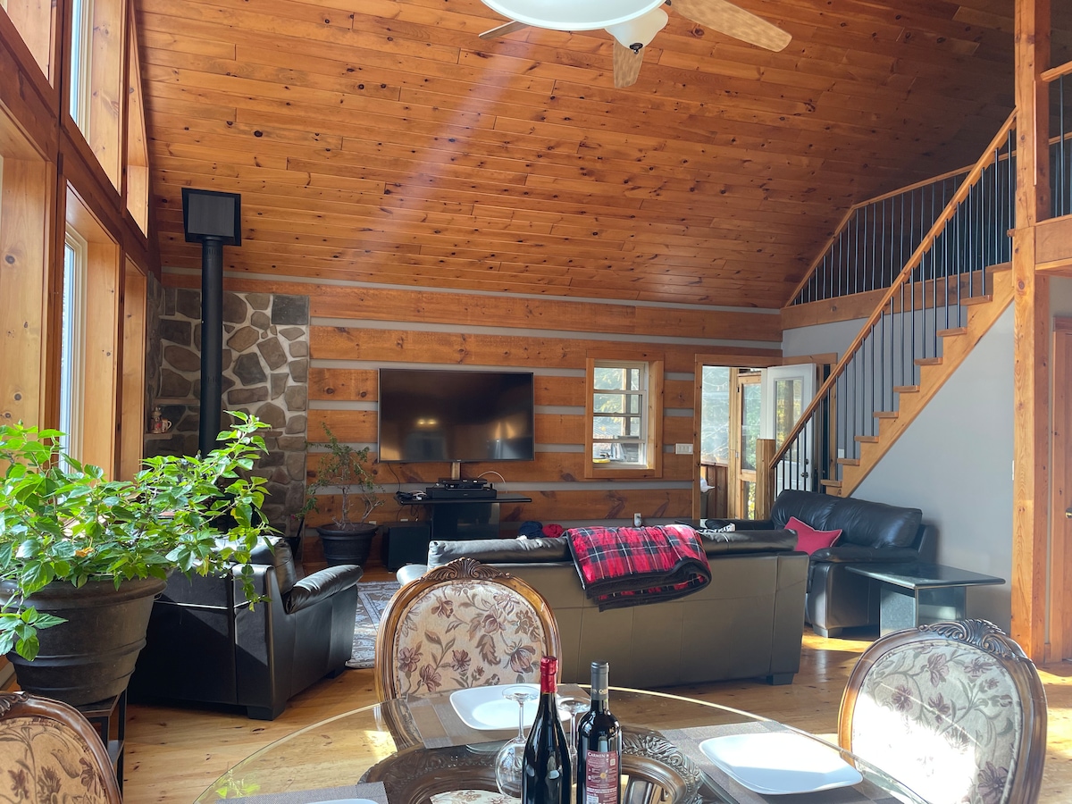 La casa de campo está situada en el centro del lago Chandos, a solo 2,5 horas de Toronto y a 15 minutos de la pintoresca ciudad de Apsley. En verano, bucea desde el nuevo muelle en aguas profundas o relájate en aguas poco profundas y arenosas en la escalera de piedra personalizada. Perfecto para nadadores de todas las edades y habilidades. En invierno, pasa un día acogedor en el interior o disfruta del tiempo al aire libre. Dos locales de esquí de fondo/raquetas de nieve, Kawartha Nordic Ski Club y Silent Lake Provincial Park, se encuentran a media hora en coche.