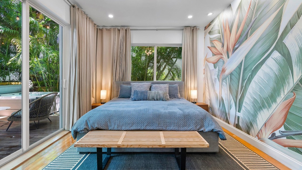 Relájate y disfruta de tu propio enclave escondido en Biscayne Gardens. Esta suite de invitados te ofrece la calidad de un hotel sin renunciar a la comodidad del hogar. Estaciona en la entrada y camina a través de tu propia entrada privada a tu suite. Hemos preparado este alojamiento especialmente pensando en los huéspedes. La piscina y el jacuzzi, ubicados a solo unos pasos de tu puerta, hacen que esta ubicación sea popular durante todo el año. Tus anfitriones son Autumn y Patricia y Buddy y China Girl, las mascotas.