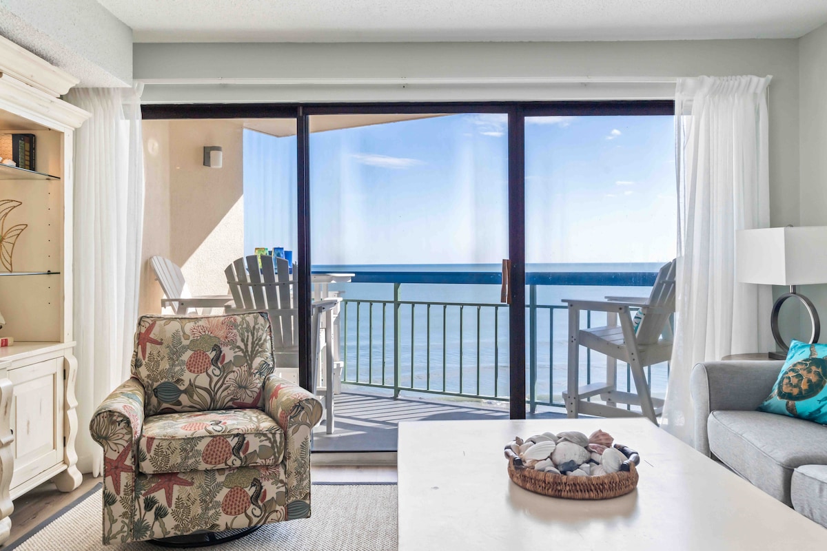 A bright, modern oceanfront retreat where everything feels simple and comfortable. Enjoy open views, a clean design, and an easygoing space made for slowing down by the sea. Top 5% rated in Myrtle Beach 🌴 Oceanfront Luxury — Seawatch Resort 1003 North Tower • 🌊 Floor-to-ceiling ocean views that make the beach feel front and center • 🛋 Bright, modern living space designed to feel open, simple, and comfortable • 🛏 Private bedroom with a comfortable king bed for restful nights • 🍳 Fully equ