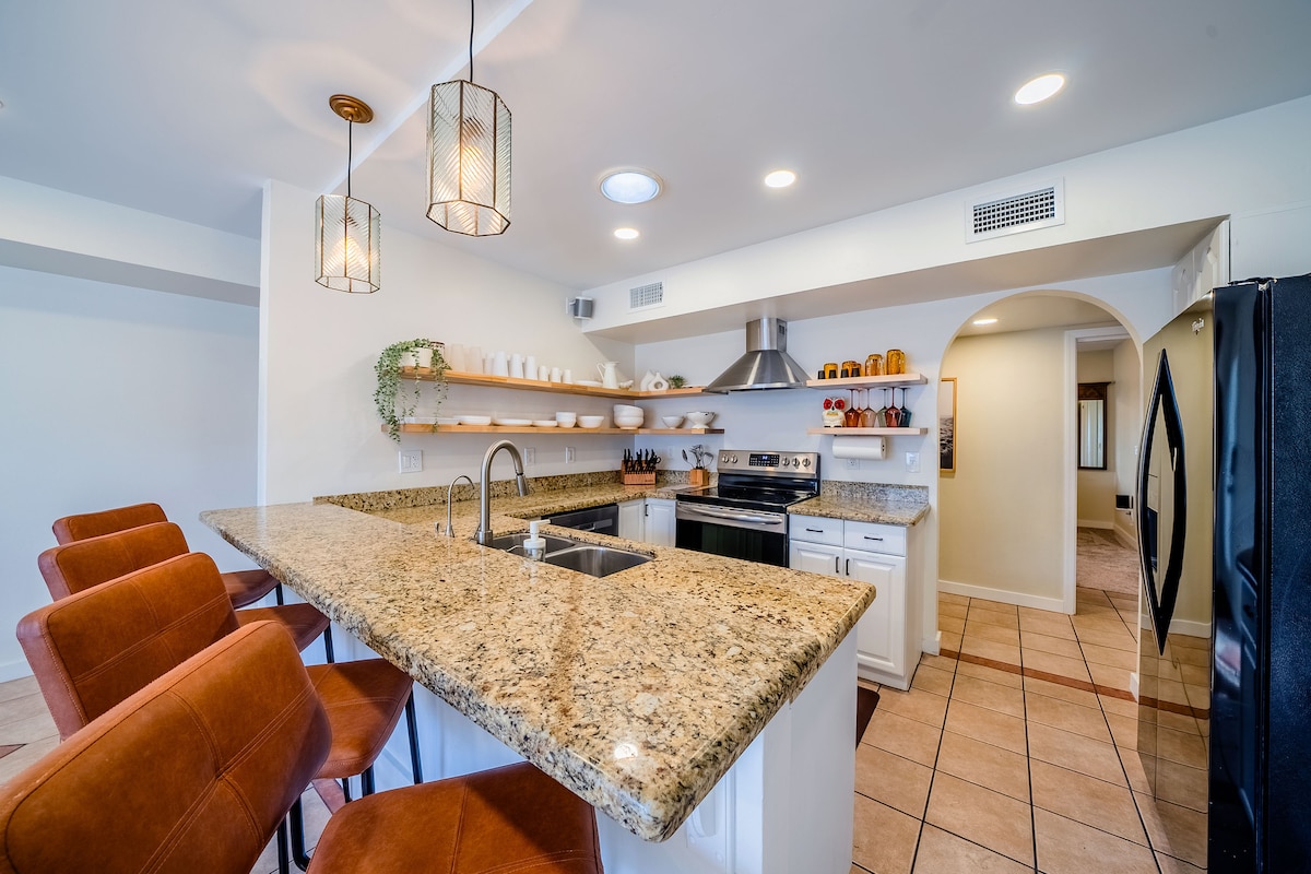 ¡Te damos la bienvenida a Tempe! Esta casa de 2 dormitorios y 1 baño tiene todo lo necesario para una estancia relajante. Totalmente equipada con iluminación inteligente regulable y altavoces en todas las habitaciones, con una cocina recientemente remodelada y un baño que cuenta con una experiencia similar a la de un spa en la bañera de inmersión, lavandería en la unidad, internet de alta velocidad, TV 4K de 86 pulgadas (todas las principales plataformas de streaming y colección de más de 300 películas, con sonido envolvente 5.1.4) incluida y un patio trasero privado. Esta casa es perfecta para un viaje rápido a la ciudad, una noche de cine o un día de vacaciones en el patio trasero.