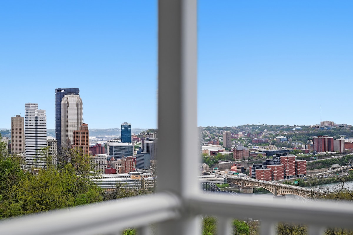 ¡Uno de los pocos alquileres amueblados en Grandview Ave, la famosa carretera con vistas de un millón de dólares en Pittsburgh! Completamente remodelado para alquileres de corta duración, nuestro alojamiento irradia el encanto de Pittsburgh. Trabaja desde casa con unas vistas espectaculares de la ciudad desde tu escritorio vintage, relájate en el sofá y mira la televisión de 60 pulgadas, o simplemente pasa el rato en la cama tamaño king. Estamos a solo una manzana de Shiloh St., con más de 10 bares y restaurantes, ¡pero siempre puedes cocinar en nuestra cocina totalmente equipada!