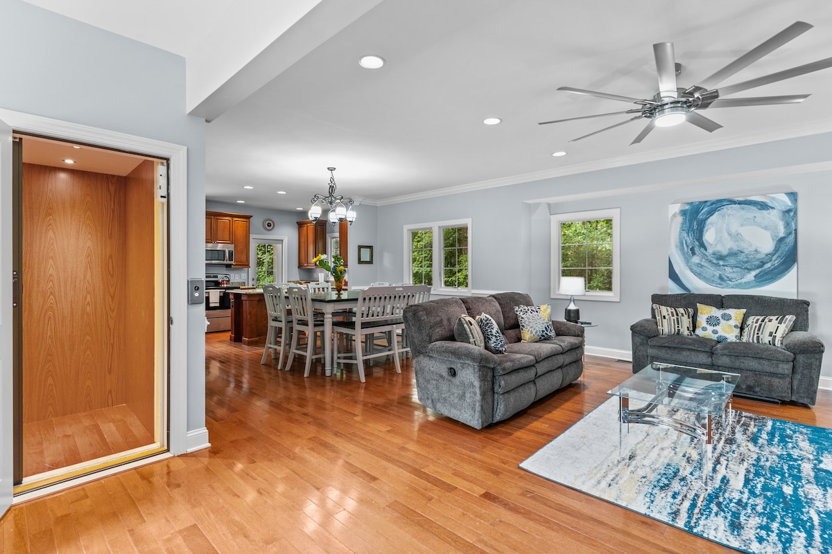 Casa muy bien actualizada que toda la familia disfrutará. 4 amplios dormitorios, cada uno con su propio baño. 3 de los dormitorios tienen colchones tamaño king nuevos, el cuarto dormitorio tiene 2 literas y capacidad para 4 personas. La cocina tiene todo lo que necesitas. Keurig en el patio y balcón al aire libre. ¡Y también un ascensor increíble! Diseñamos esta casa para que realmente se sienta como tu hogar lejos de casa. ¡Ubicación céntrica a 2 minutos de UNCW y a 12 minutos de la playa de Wrightsville! 10 camas en total