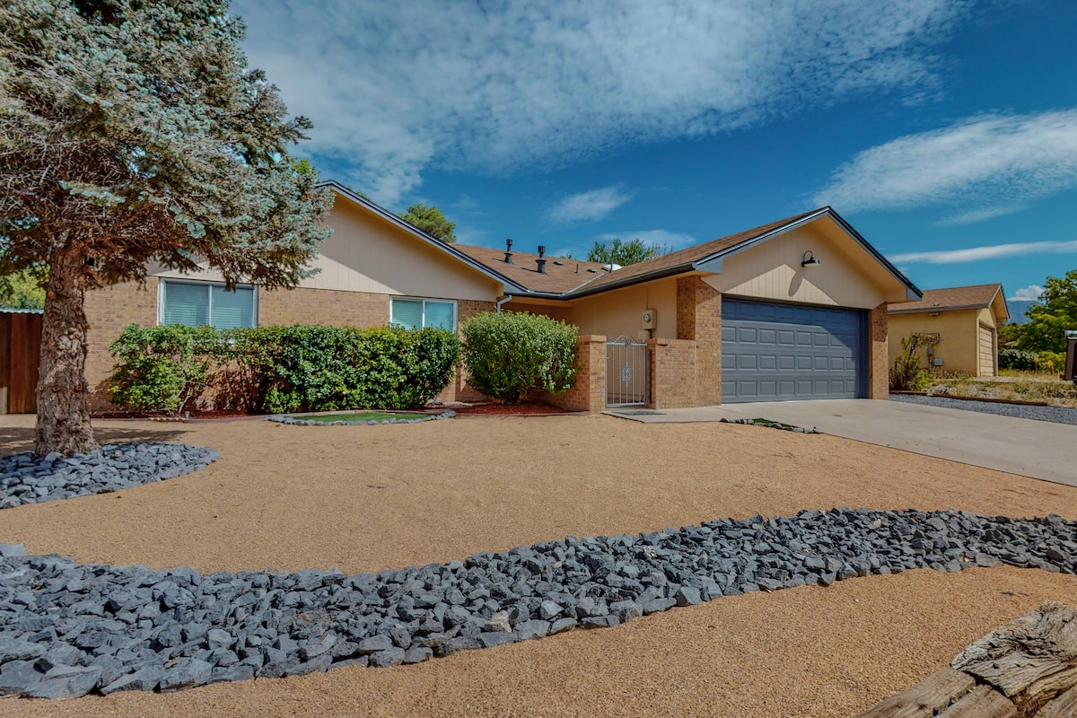 Casa superlimpia, céntrica, recién reformada, familiar y apta para mascotas. Ubicada en un barrio seguro y tranquilo en el lado noreste de la ciudad de Albuquerque, la casa está convenientemente ubicada junto a la I-25, a 10 minutos a pie de la entrada de Balloon Fiesta y a poca distancia en coche de restaurantes/tiendas. Es un lugar perfecto para disfrutar de las magníficas puestas de sol de Albuquerque, las vistas a la montaña y los ascensos en globo aerostático. ¡Te sentirás como en casa en nuestro espacio limpio, acogedor y bien surtido!