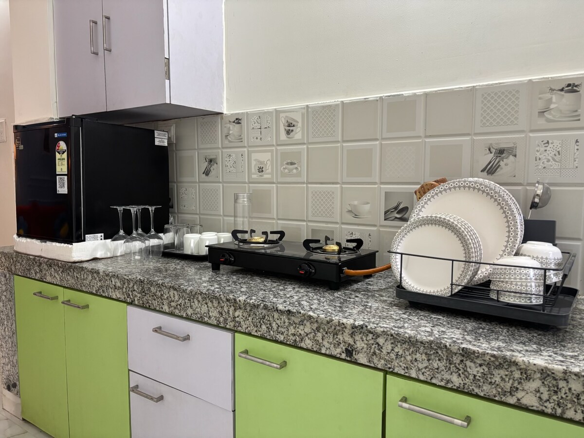 Acogedor estudio en ático para parejas cerca del metro de Netaji Alójate en este espacioso y luminoso estudio ático en el tercer piso de Annapurna Residency, a solo 4 minutos a pie del metro de Netaji, el mercado y los centros de transporte. Perfecto para trabajar o relajarse, cuenta con un proyector de 6x4 pies, espacios de trabajo, masajeador de piernas, masajeador corporal, spa para pies y elementos esenciales de fitness como una esterilla de yoga, pesas y barra de dominadas. Un refugio tranquilo con todas las comodidades modernas.