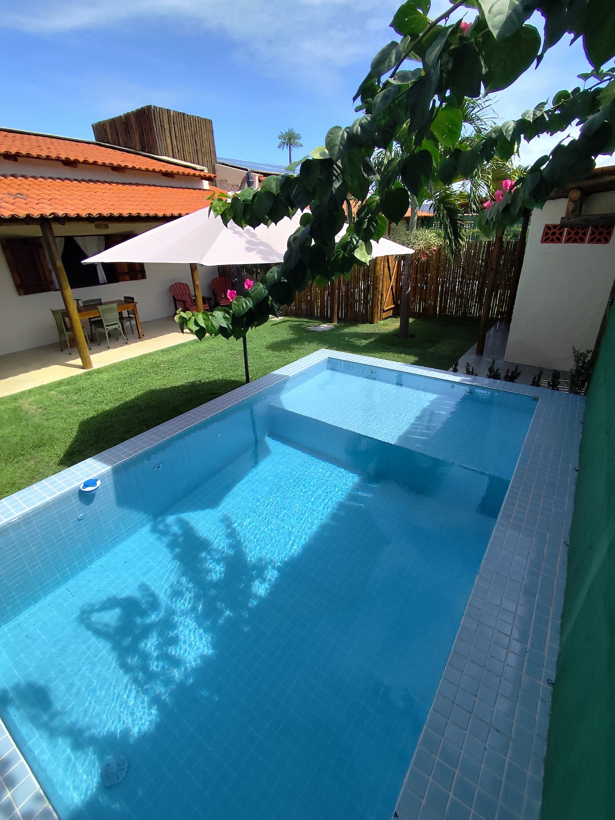 Situado en un condominio cerrado - MILAGRES PÉ NA AREIA- CASAS CON ENCANTO. Total seguridad y tranquilidad. Bungalow de lujo, con piscina privada. Ideal para una luna de miel o para aquellos que quieren buen gusto y privacidad. Situado en la orilla del mar de Praia do Toque, que es la mejor playa de São Miguel dos Milagres. Junto a restaurantes maravillosos. El taxista te recogerá en la puerta de la casa para llevarte de paseo a las increíbles piscinas naturales de la región. Ofrecemos desayuno