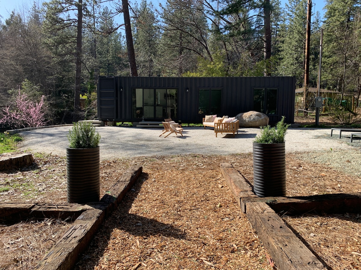 ¡Relájate entre los árboles y el aislamiento en esta nueva conversión de contenedores de lujo! La preciosa zona al aire libre cuenta con una bañera de inmersión, un pozo para el fuego, un juego de bistró y un sofá cama. La decoración moderna y los servicios del interior son igual de impresionantes y tienen todo lo que querrías en un hogar lejos de casa. Nuestra céntrica ubicación está a solo 10 minutos de Arcata y de todas las impresionantes playas que rodean Trinidad. ¡Otra ventaja de alojarte con Humboldt Getaways es nuestro vale de regalo con descuentos para empresas locales!