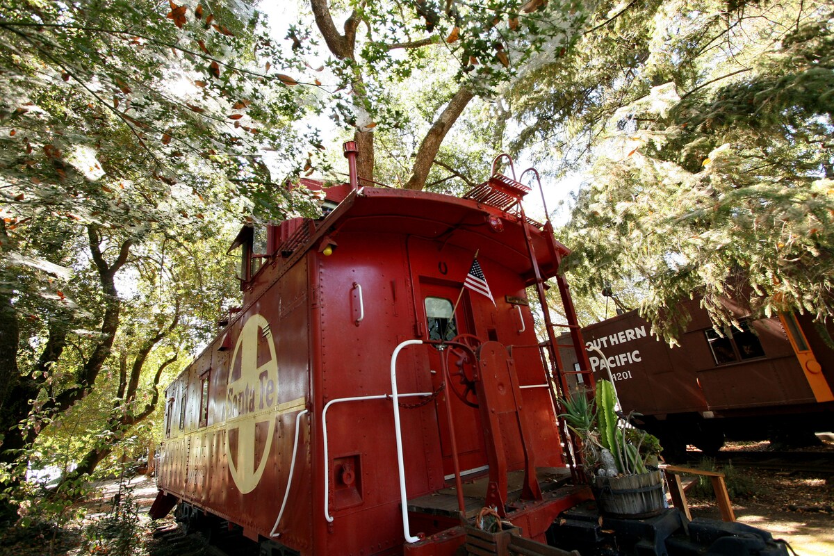 This Santa Fe red cupola caboose offers a serene, pet-free retreat reserved exclusively for adult guests. With its unique blend of charming knotty pine and original steel details, this caboose showcases authentic railroad character while providing a peaceful escape on the quiet side of the property. It is one of the most consistently praised units on the property.
