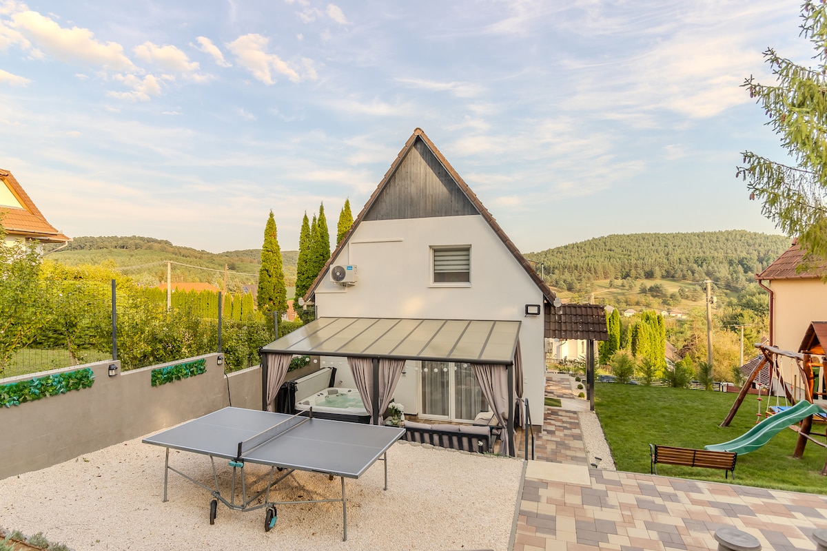 La casa de huéspedes Hegyes-Tető espera a los visitantes en una de las ciudades más hermosas y queridas de la curva del Danubio, Nagymaros. La casa de más de 120 años en 2020 fue restaurada a su villa suiza original después de una larga renovación. Su diseño exigente, estilo diferente por habitación, bodega de 80 metros de largo y vistas impresionantes garantizan un ambiente especial. El servicio de refrigeración y calefacción de la casa es proporcionado por energía geotérmica y hay wifi gratuito disponible en toda la zona.