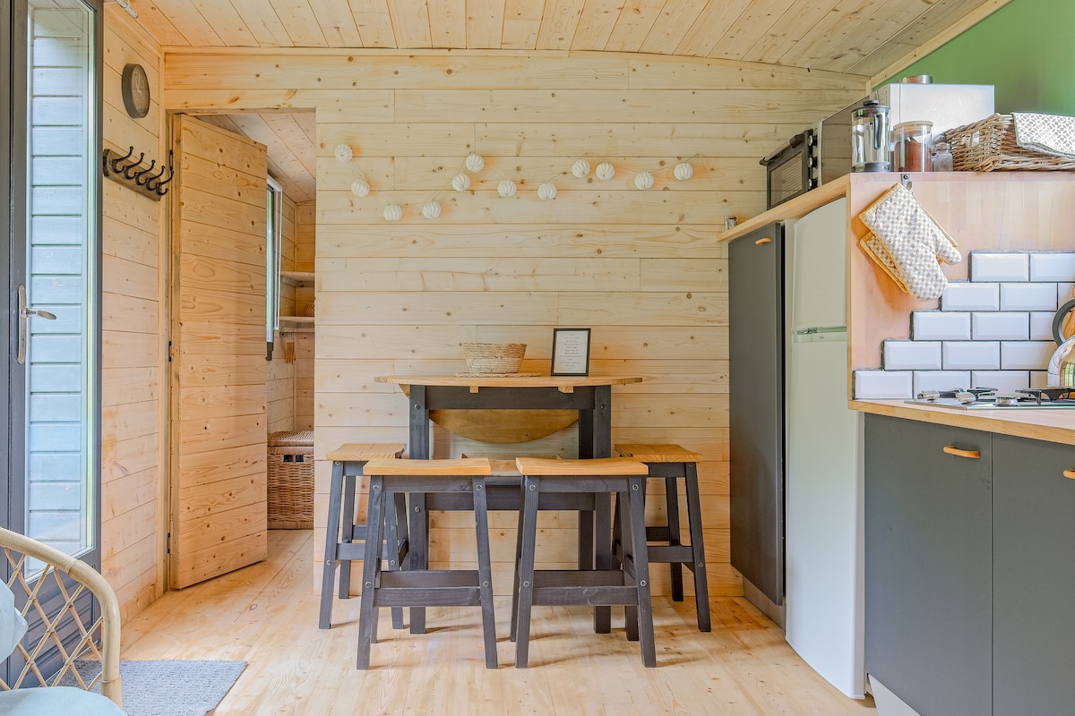 Venez vivre une parenthèse romantique dans notre lodge niché en pleine nature. Intimité, confort et ambiance cosy vous attendent. Détendez vous dans votre bain nordique et profitez du calme pour vous ressourcer et vous reconnecter à l’essentiel. Pour plus de confort, notre lodge dispose d’une literie 200x200, d’un espace détente avec mini bar (café et thé à disposition) ainsi que d’une salle de douche. Le petit déjeuner continental (produits locaux) sera déposé le matin devant votre porte.