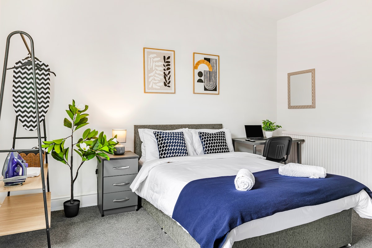 Modern, cosy 2‑bed flat in the heart of Nottingham. Step inside to a warm and inviting flat featuring a comfortable sofa, smart TV, and a clean, modern aesthetic throughout. Enjoy two bright bedroom space, fully equipped kitchen, comfy bedroom, fast Wi‑Fi and easy self‑check‑in. Perfect for business trips, weekend stays , city breaks and long stay. Close to top attractions, restaurants, shops and excellent transport links ,your ideal base for exploring Nottingham.