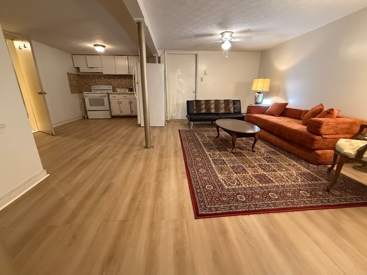 Bright, comfortable, large private room in a newly renovated basement apartment. The space is peaceful, clean, and cozy. Ideal for guests who value a quiet, simple place to rest. Discount for extended stay. Centrally located on main street: walking distance to restaurants and medical offices. You will be staying in one out of two rooms, the other room is often unoccupied, leaving the entire unit to yourself. This restorative space is ideal for someone who values peace, comfort, and privacy.