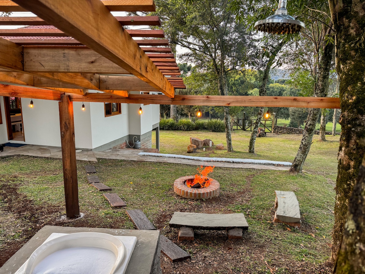 ¡Relájate con toda la familia en este tranquilo y encantador alojamiento en el campo de Nova Petrópolis! Ubicado en un Ecositio en la línea Imperial, puedes disfrutar del silencio y la paz de la naturaleza. El espacio tiene un quiosco que ofrece desayuno por separado a pedido con 24 horas de anticipación) con productos locales, panes, mantequilla, mermeladas, leche y café, fruta o jugo en temporada (precios a pedido). Quiosco completo con barbacoa y horno para pizza, por separado bajo reserva.