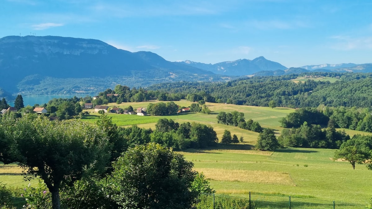 Acogedor apartamento, luminoso con vistas excepcionales a la tranquilidad en un terreno adosado con el carril bici, a 75 metros del lago, cerca de tiendas (panadería, tienda de comestibles, peluquería, pizzería, restaurante, tenis, puerto, puerto con deportes acuáticos variados y alquiler de bicicletas y alquiler de bicicletas) . Ideal para unas vacaciones a pie y en bicicleta. Annecy a 20 minutos en bicicleta. Salida de senderismo. Estaciones de esquí ( de pista y nórdico) a partir de 45 minutos en coche, ( Semnoz, Seythenex, la Clusaz, el Grand Bornand).