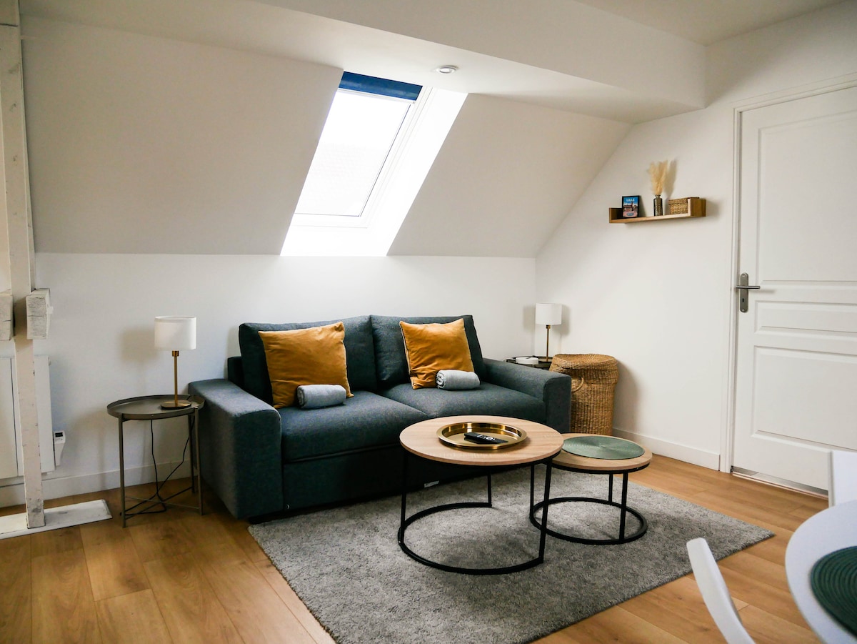 Siéntete como en casa en este luminoso y acogedor departamento de 1 dormitorio. A solo 500 m de la estación de tren Lens y a pocos pasos del centro de la ciudad, el apartamento se encuentra en una zona tranquila y segura. Encontrarás todos los elementos esenciales: wifi de alta velocidad, TV, cocina totalmente equipada, lavadora. Un dormitorio doble y un cómodo sofá cama garantizan un sueño reparador. Ducha de estilo italiano, inodoro separado y amplio espacio de almacenamiento.