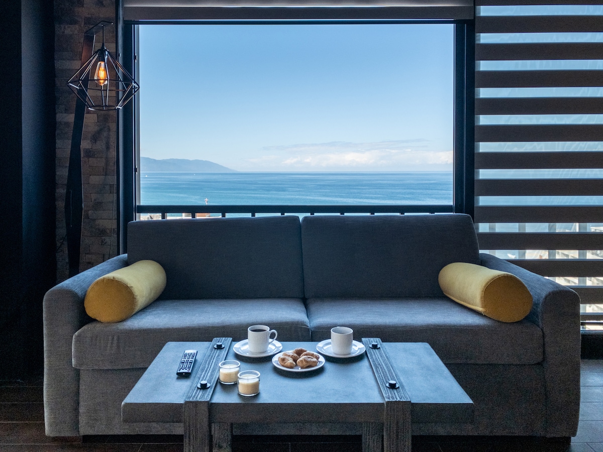 Despierta con el sonido del mar y una vista increíble desde tu balcón privado en este moderno estudio frente a la playa en Las Glorias. Perfecto para parejas o viajeros solos, ofrece cama King, WiFi rápido, cocina equipada y acceso directo a la playa. Relájate en la alberca en la azotea del piso 30 o disfruta de amenidades tipo resort: jacuzzis, gimnasio, y más. A minutos del Malecón y Versalles, pero con la tranquilidad ideal para desconectarte.