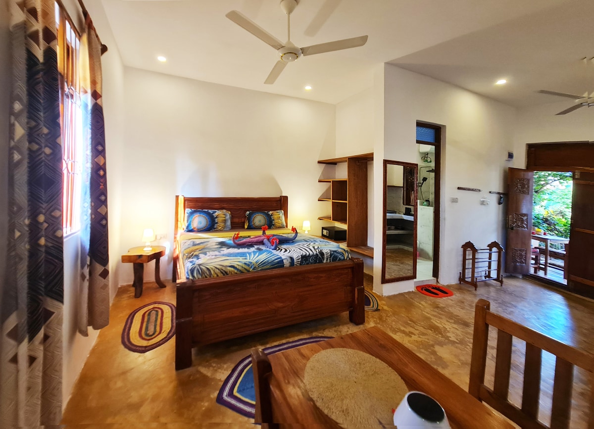 Este es un pequeño estudio que incluye: cocina abierta, terraza, habitación y baño. El desayuno está incluido,excepto para las estadías mensuales. Puedes pedir el almuerzo, la cena y bebidas por un coste adicional. Alquilar un scooter o un coche es ideal para tener más libertad para explorar la isla y tener independencia. El transporte local está disponible a 5 minutos a pie. Las concurridas playas de Kendwa y Nungwi están a 15 minutos en coche. Solo hay pequeñas tiendas de productos básicos disponibles en la zona. Hay algunos restaurantes y resorts cerca.