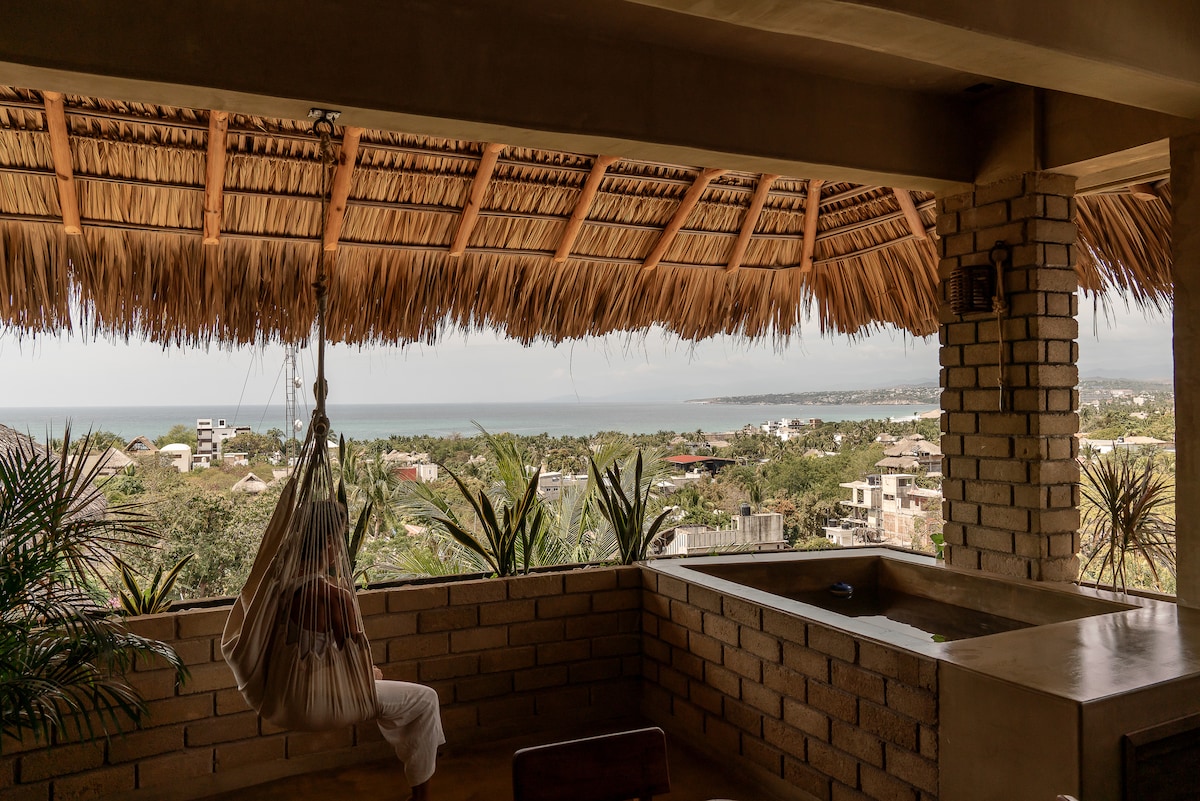 La residencia personal de un conocido artista internacional en el centro de Puerto Escondido, ubicada en las colinas frente al Océano Pacífico e inspirada en una villa grecorromana, se convirtió en un hotel boutique de lujo con solo cinco apartamentos, todos con vistas que llegan a La Punta y cerca de todo. Los huéspedes pueden usar una sala de música con un piano de cola, una gran piscina y un hamam (baño turco). Esta suite también tiene una pequeña piscina privada adicional. Una experiencia poco común para quienes buscan algo más.