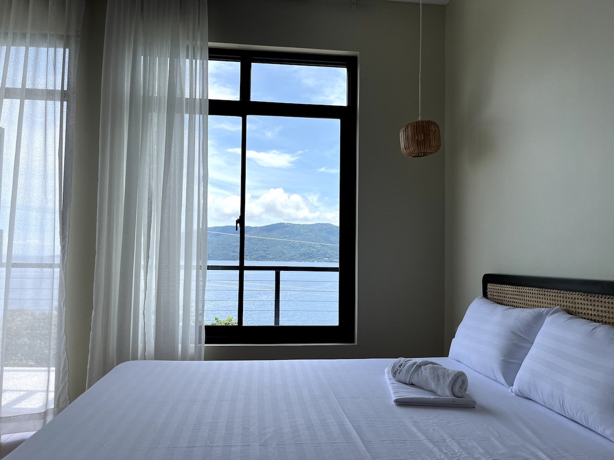Relax and unwind taking in your spectacular ocean views , looking out from your large veranda over the dive sites of Verde island passage . Access to apartment is up 6 steps to the veranda, entrance is through a sliding double door. Queen size bed 48inch tv ,kitchenette with single burner hob and all utensils supplied to make your special meal .separate private shower room and walk in closet.