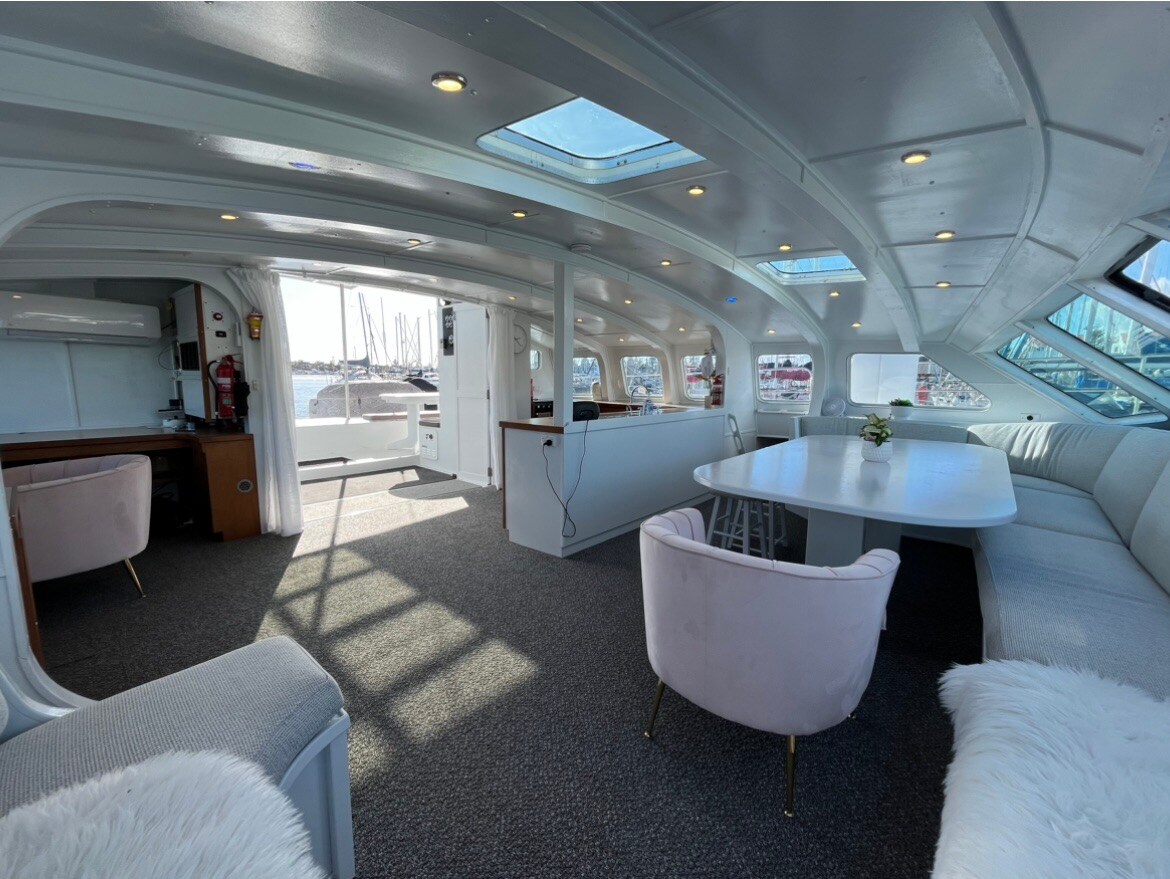 Disfruta del catamarán privado más grande de Adelaida en una escapada romántica. Esta experiencia de lujo es única. Disfruta del spa climatizado o relájate en bolsas de frijoles en las redes, observa a los delfines. En el interior está configurado como una casa con todos los extras y la cama es como dormir en una nube. Incluye una bandeja romántica y un vino espumoso. Nota: el barco está en el puerto deportivo y no se mueve, pero la posición es muy privada con excelentes vistas al océano.
