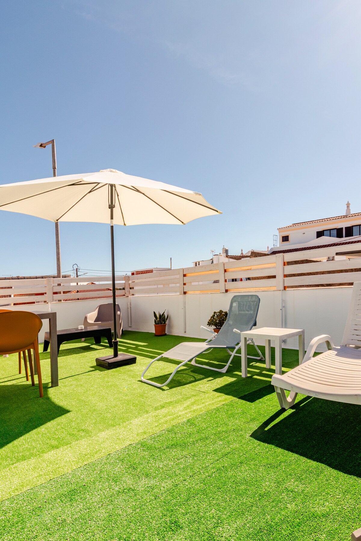 Stunning 2-bedroom eco-friendly apartment in the historic centre of Lagos. Step onto the shared rooftop terrace with panoramic views of the old town, Monchique Mountain, and Meia Praia Beach—perfect for sunrise coffee or sunset BBQs. Enjoy air conditioning, spacious interiors, and refined comfort throughout. Rated 5 stars by 600+ guests, ideal for families, friends, or couples seeking a luxury retreat in central Lagos.