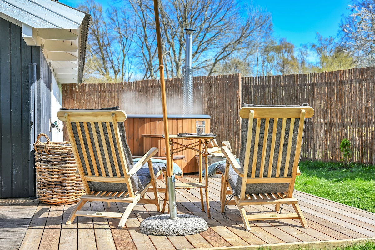 Welcome to our forest retreat 🌲 We’re Cecilie and Gustav This modern 120 m² cabin sits on a large private lot and sleeps up to 12 guests with 5 bedrooms + attic, 6 double beds, and 2 bathrooms Enjoy the open living space, large dining area, and fully equipped kitchen. Outside, relax in the private sauna and wood-fired jacuzzi, or unwind on the terrace surrounded by trees The beach is just 1 km away, offering great balance of forest and sea A peaceful place for togetherness and relaxation