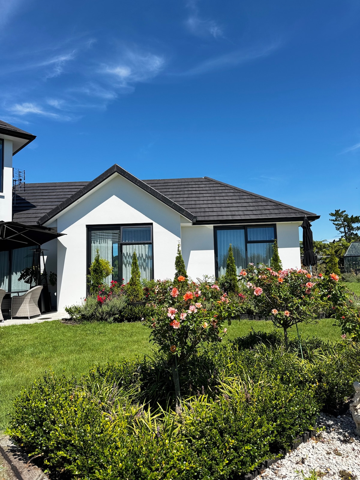 Siéntete como en casa y disfruta de un montón de espacio en este gran alojamiento: salón independiente, comedor, dormitorio y baño. TV de pantalla grande con Netflix en un acogedor salón. Asientos cubiertos en el exterior para disfrutar de la comida o contemplar el cielo estrellado por la noche. Terrenos con aparcamiento y canto de pájaros durante el día. Nuestra ubicación en la semirural Welcome Bay te permite llegar fácilmente a las zonas circundantes de Tauranga/Mt Maunganui/Papamoa/Te-Puke (a unos 15-20 minutos en coche). A solo 1 hora en coche de Rotorua y a 50 minutos de Hobbiton.