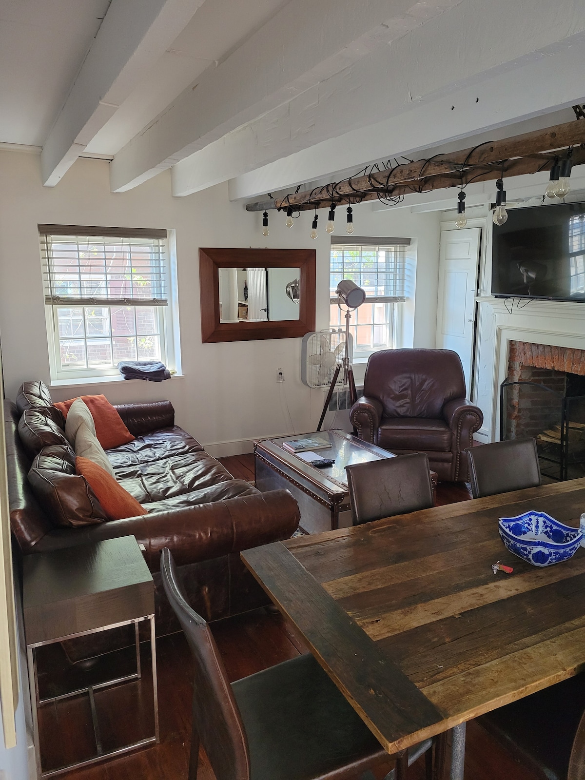 Stay in a spacious 1700s apartment on Elfreth’s Alley, America’s oldest continuously inhabited residential street and a National Historic Landmark. This 1,000+ sq ft, 2-bedroom retreat blends colonial charm with modern comfort, featuring a full kitchen, private balcony, high speed Wi-Fi, and air conditioning. Also has spacious desk for work. In Old City, steps from the Liberty Bell, Betsy Ross House, and Museum of the American Revolution. Please note: third-floor walk-up, no elevator.