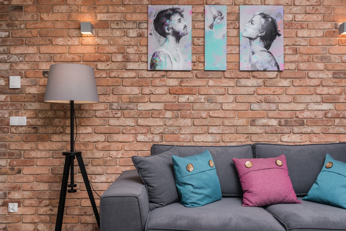 A beautiful, atmospheric apartment in a unique place with A/C. A wonderful, quaint building with atmosphere built in the walls of the former municipal power plant. 24/7 security guarded. 600 MB Internet. The apartment is located in the heart of Kazimierz, 40 m2, consists of a spacious room with a kitchenette, a sleeping area, a bathroom and a hall. An atmospheric, very quiet apartment. High speed internet 600 MB and a computer working place.