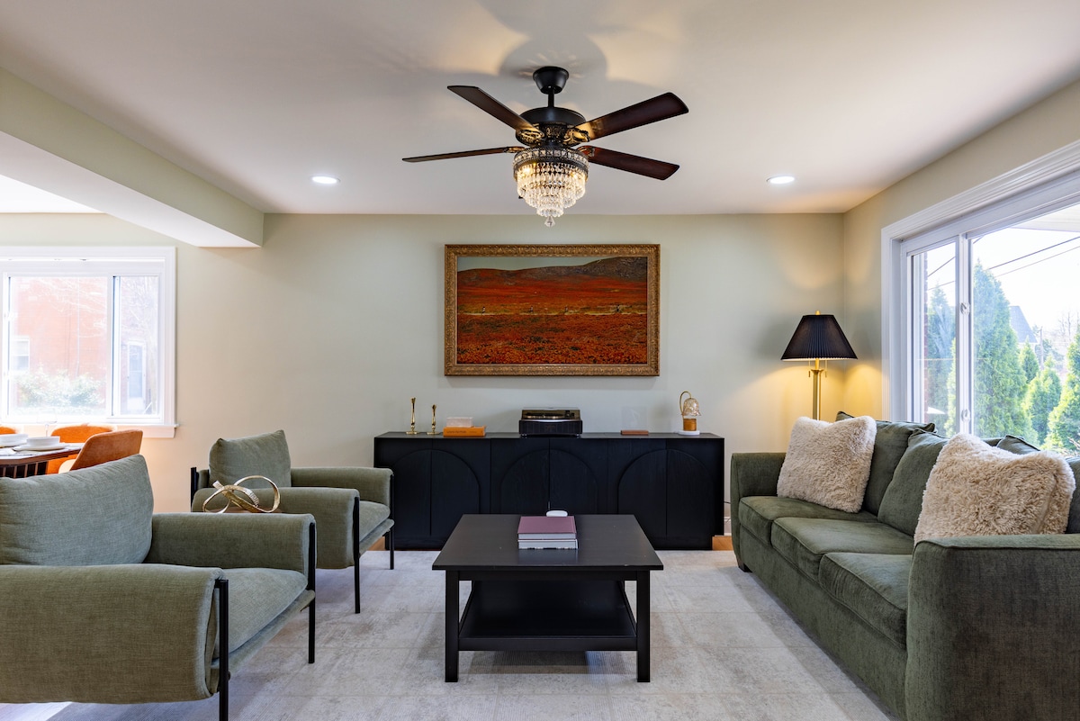 ¡Disfruta de lo mejor de lo antiguo y lo nuevo! Apartamento independiente en un American Foursquare de 1920 totalmente renovado, ubicado en el ecléctico barrio de Del Ray en Alexandria, Virginia, donde «la calle principal todavía existe». Una renovación de arriba a abajo ofrece a los huéspedes alojamientos de lujo en una suite de nivel inferior limpia y brillante con entrada independiente. Con aparcamiento gratuito en la calle, perfecto para viajes de negocios o vacaciones, los huéspedes pueden ir andando fácilmente a los restaurantes, tiendas, cafeterías, bares y galerías de Mount Vernon Avenue.
