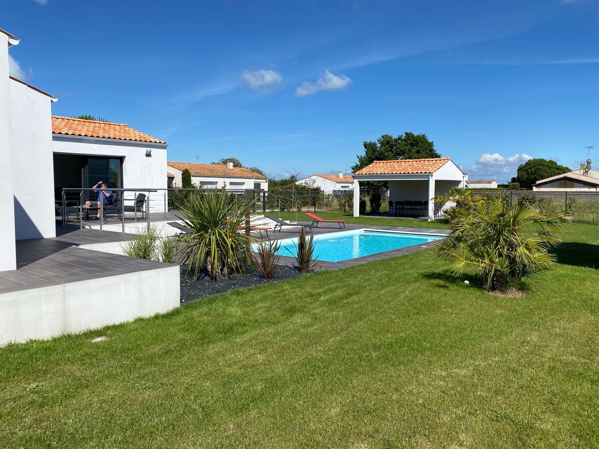 Casa nueva de una planta en un pueblo residencial tranquilo y bucólico con espacio exterior y garaje privado protegido de las miradas. Playa a 5 minutos en coche o a 15 minutos en bicicleta. Ciclovías muy cerca. A menos de 10 minutos en bicicleta o a 3 minutos en coche: centro acuático ILEO, Intermarché y centro de la ciudad. Nativos de la isla, podemos aconsejarle para sus salidas y actividades. ATENCIÓN: del 27 de julio al 31 de agosto las reservas se hacen solo de sábado a sábado.