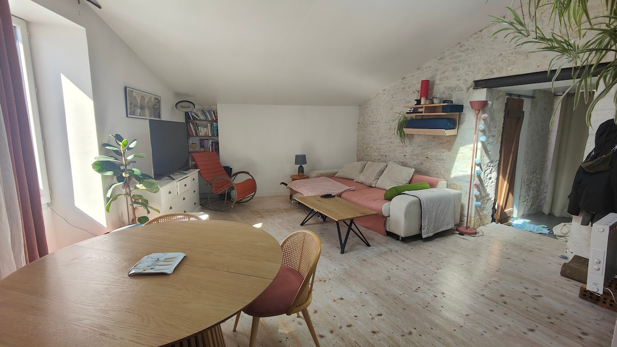 ¡BIENVENIDOS A L'IØDE ET MERVEILLES! Casa nueva con aire acondicionado de 50 m2 muy cómoda situada en el corazón del castillo de Oléron a los pies de las murallas. Ubicación ideal: - a menos de 10 minutos a pie del mercado y de los comercios - a menos de 10 minutos andando de las playas - a 100 metros de un supermercado - a 15 minutos a pie del puerto y de sus imprescindibles cabañas de ostras reconvertidas en talleres de artistas - a 15 minutos a pie de la Ciudadela de Leonor de Aquitania - al pie de los carriles bici.