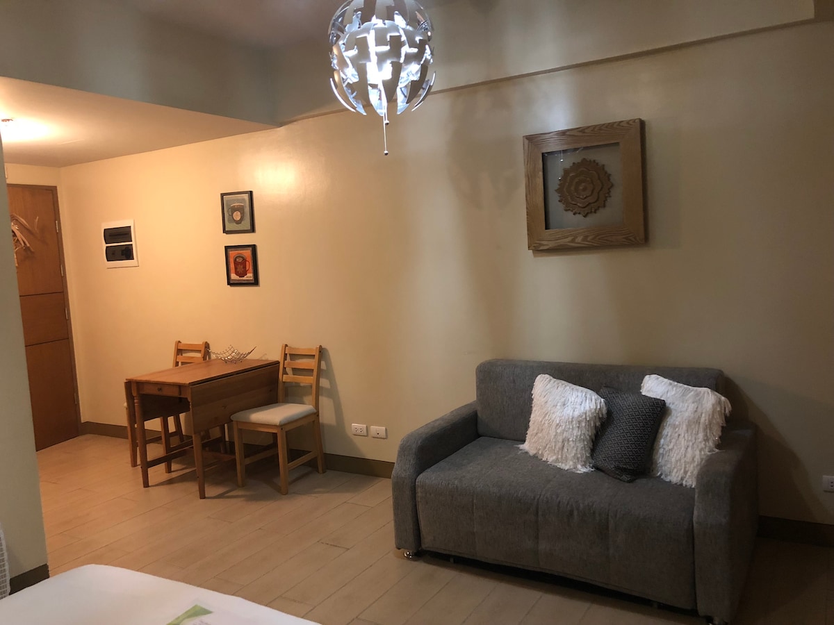 [Haz clic en Mostrar más para obtener más información]. Two Palm Tree Villas se encuentra al otro lado de la Terminal 3 de Naia. Unidad de estudio de condominio totalmente amueblada (31 metros cuadrados), lugar seguro y céntrico: Televisión inteligente ● de 55 pulgadas (Netflix y YouTube Premium) Configuración ● de doble proveedor de Internet ● Ten espacio para hacer las maletas ● A 4 minutos a pie de la iglesia de Santa Teresa A ● 5 minutos a pie del puente Runway Manila-Terminal 3 ● A 8 minutos a pie del supermercado Metro ● A 8 minutos a pie de Resorts World/Newport Mall A ● 10-15 minutos en coche de la terminal 1, 2 y 4