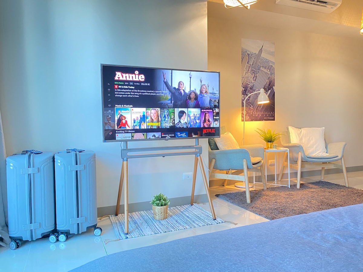 Libérate del estrés del trabajo y encuentra serenidad en nuestro apartamento en Uptown BGC, cerca de Uptown Mall y Bonifacio High Street. Envuelto en un ambiente bohemio, revive tus recuerdos paradisíacos dentro de la bulliciosa ciudad de BGC en nuestra acogedora sala de estar completa con un cómodo sofá y un televisor Sony 4k de 65 pulgadas. Disfruta del lujo de Uptown BGC, mientras contemplas la pintoresca vista de la ciudad en nuestro asombroso balcón. Unas vacaciones bien empleadas para un huésped que se lo merece. Solo aquí en Sojourn Home BGC.